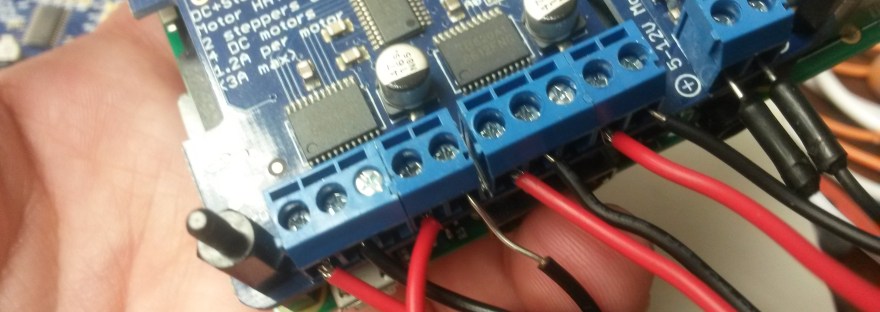 Motor control with the raspberry pi is pretty simple. In addition to the pi, you may use a board such as DC+Stepper Motor HAT board from Adafruit and some stepper motors. (Here’s how stepper motors work.)