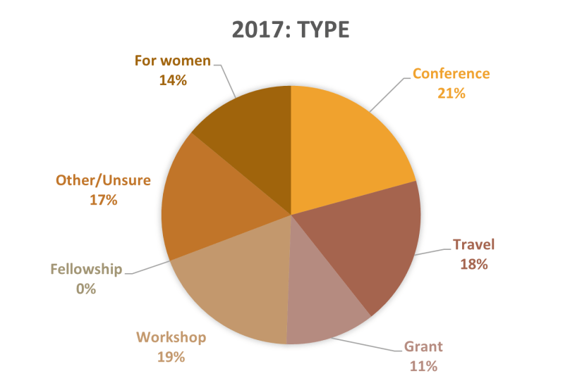 In 2017 I was halfway through my PhD and frustrated with the opportunities available to me at my home institution. Conferences were rarely held even far away, and no travel funding. I thought even if I did apply, I would probably get rejected anyway. Apparently that mentality is common in women.